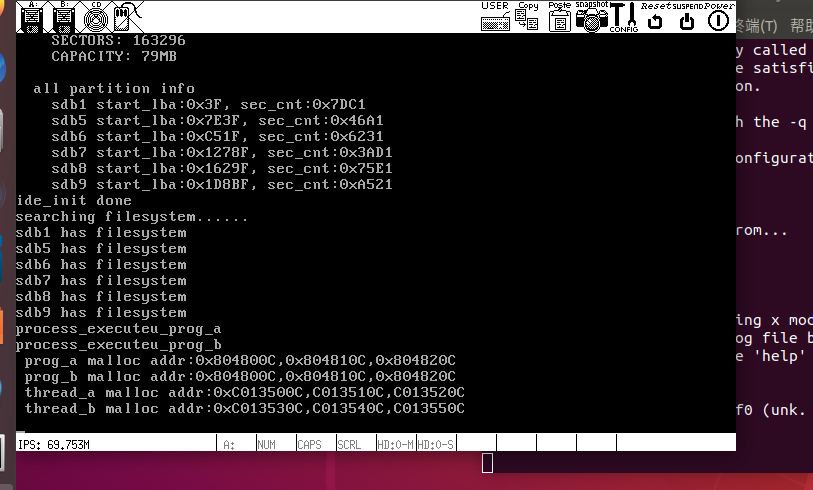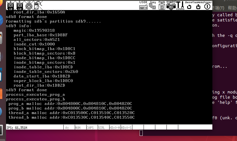 ide_read(hd, sb_buf->block_bitmap_lba, cur_part->block_bitmap.bits, sb_buf->block_bitmap_sects)将硬盘上的块位图读入到内存。也就是读到cur_part->block_bitmap.bits。完成了块位图的加载。 分区越大。块位图占用的内存就越多。因此物理内存一定要匹配。不要出现物理内存太小而分区太大。连块位图都容纳不了的情况