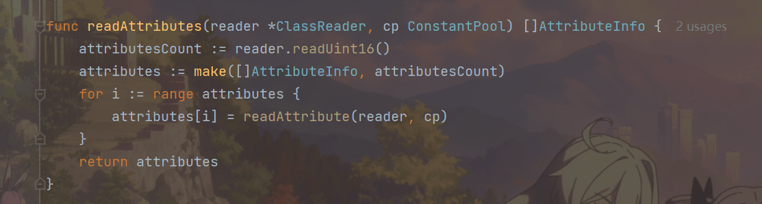 func readAttributes(reader *ClassReader, cp ConstantPool) []AttributeInfo {