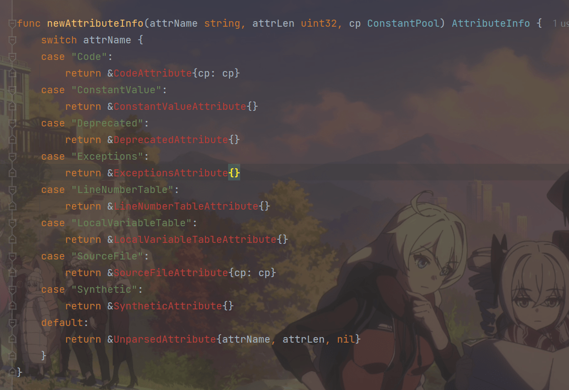 func newAttributeInfo(attrName string, attrLen uint32, cp ConstantPool) AttributeInfo {