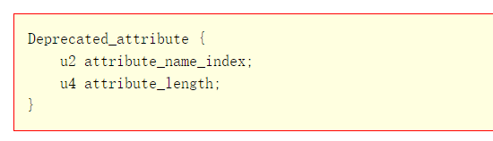 Deprecated和Synthetic是最简单的两种属性,仅起标记作用,不包含任何数据。这两种属性都是JDK1.1引入的,可以出现在ClassFile、field_info和method_info结构中,