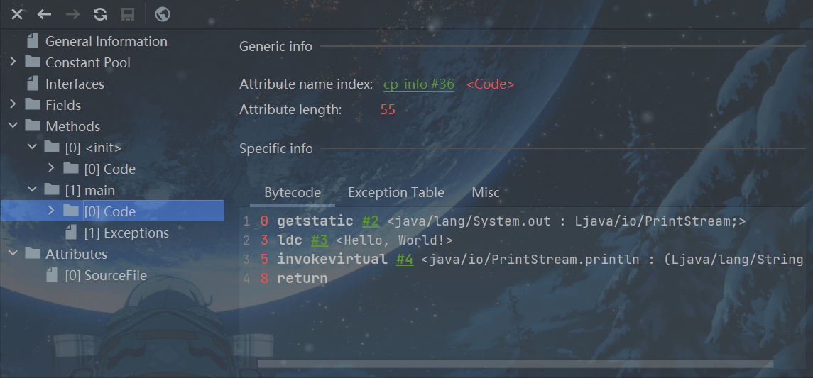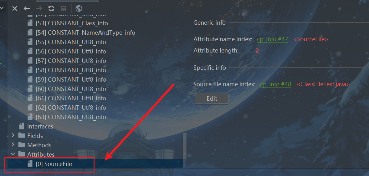 注意,属性表中存放的属性名实际上并不是编码后的字符串,而是常量池索引,指向常量池中的CONSTANT_Utf8_info常量。
