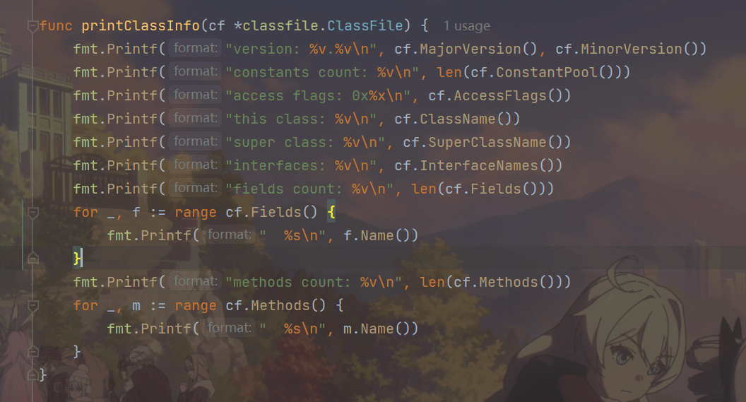 fmt.Printf("access flags: 0x%x\n", cf.AccessFlags())