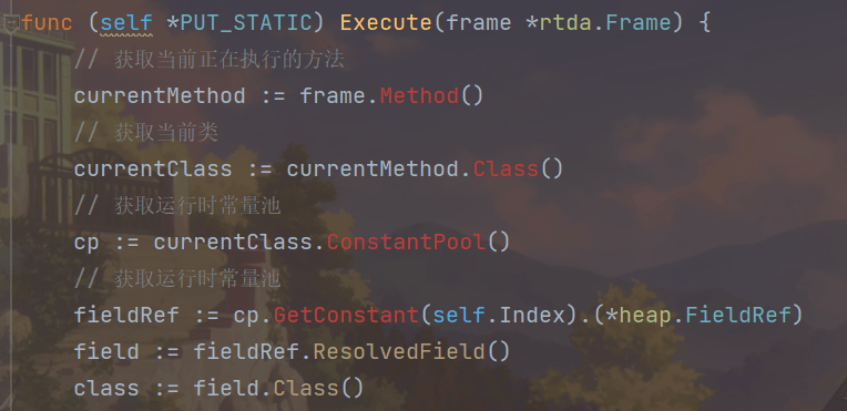 在references目录下创建putstatic.go文件,在其中实现putstatic指令,代码如下: