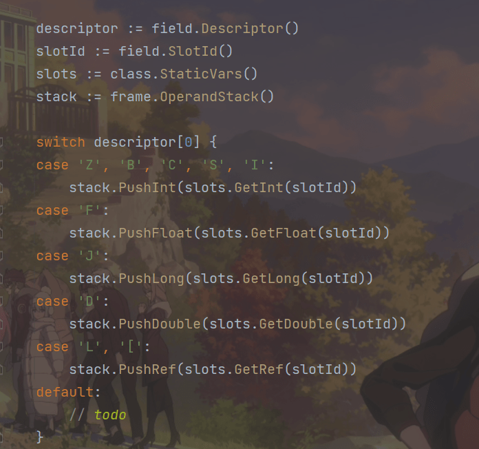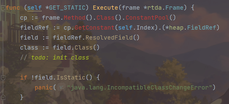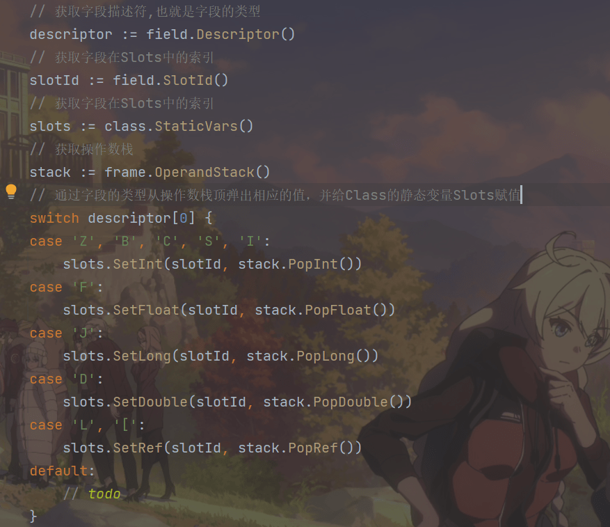 新创建对象的实例变量都应该赋好初始值,但GO已经自动赋值。new指令实现好了,下面看看如何存取类的静态变量。