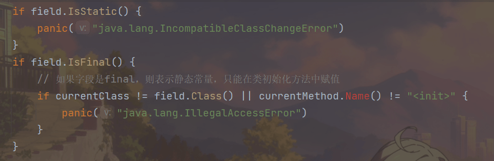 // 如果字段是final,则表示静态常量,只能在类初始化方法中赋值