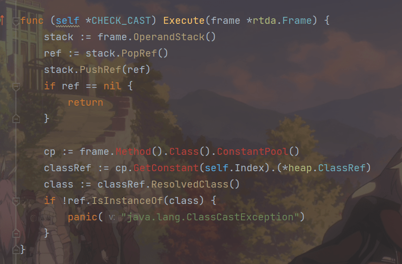下面来看checkcast指令。在references目录下创建checkcast.go文件,在其中实现checkcast指令,代码如下: