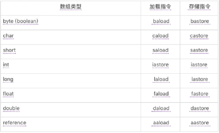 数组操作指令主要有: xastore和xaload指令。具体为: