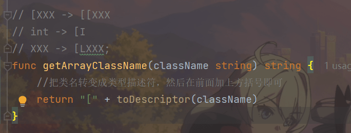 getArrayClassName()函数,把类名转变成类型描述符,然后在前面加上方括号即可。: