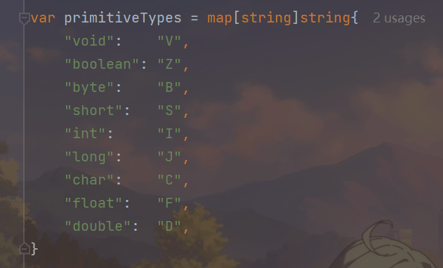 primitiveTypes变量定义基本类型和对应类型描述符map
