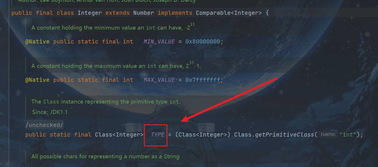 void和基本类型也有对应的类对象,但只能通过字面值来访问,如下面的Java代码所示。