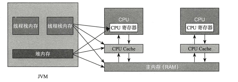 Java 的内存模型是一个抽象的概念,其与计算机硬件的结构并不完全一样,比如计算机物理内存不会存在栈内存和堆内存的划分,无论是堆内存还是虚拟机栈内存都会对应到物理的主内存,当然也有一部分堆栈内存的数据有可能会存入 CPU Cache 寄存器中。