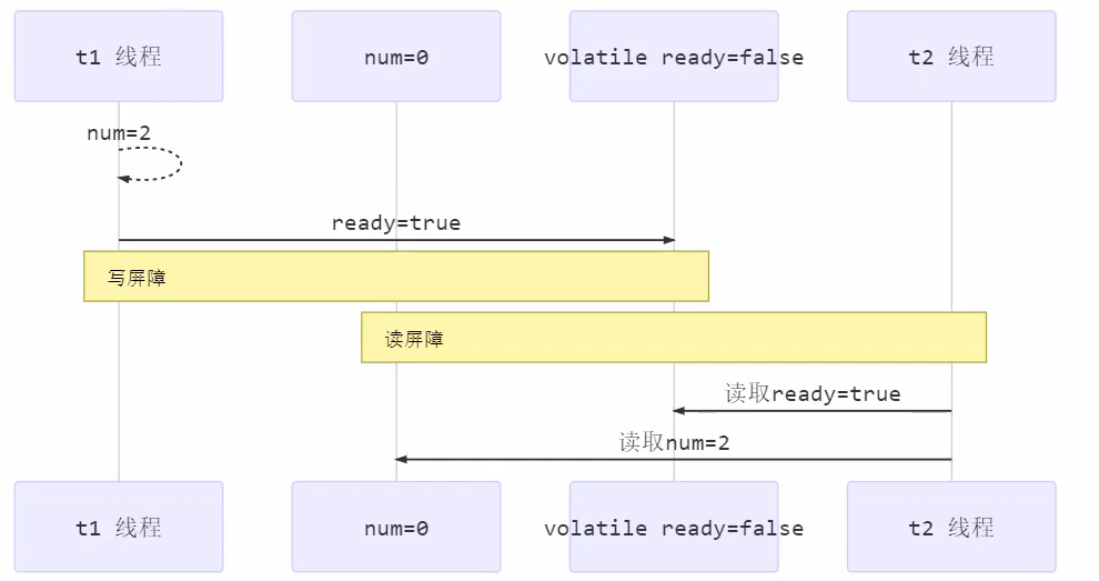 1. 初始状态, t 线程刚开始从主内存读取了 run 的值到工作内存。