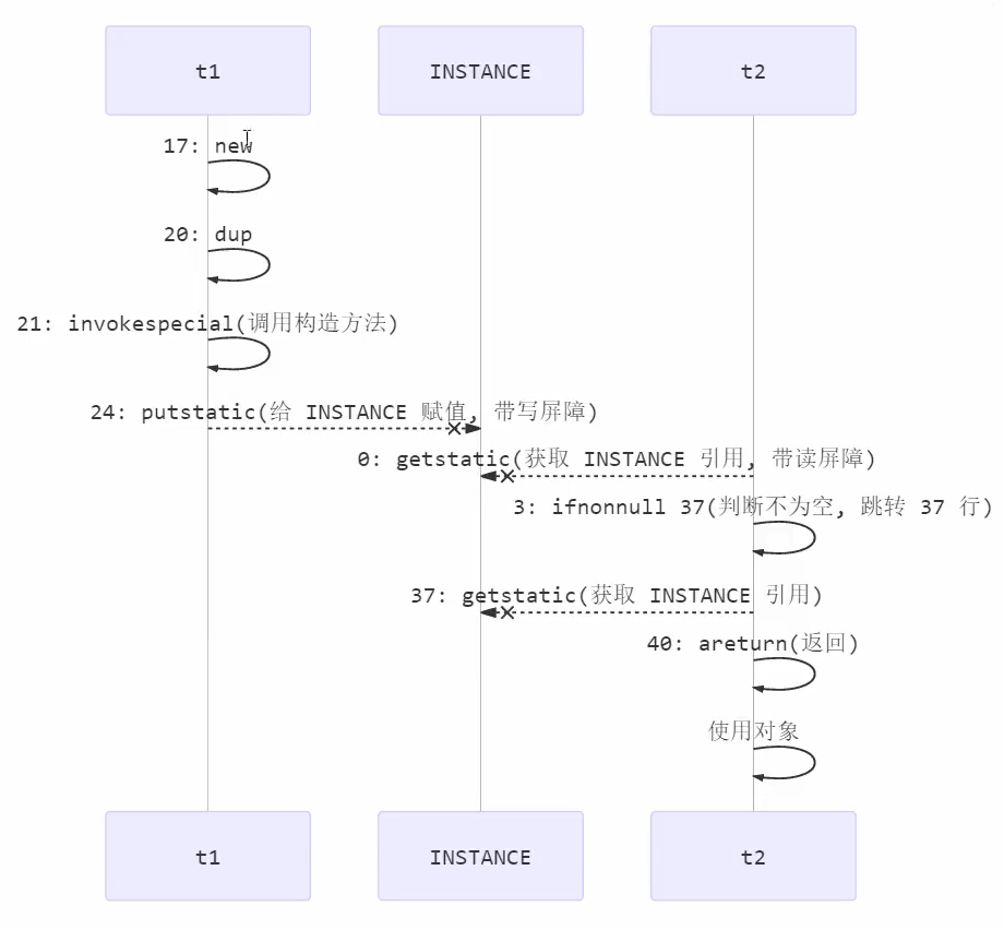 前面例子体现的实际就是可见性,它保证的是在多个线程之间,一个线程对 volatile 变量的修改对另一个线程可见, 不能保证原子性,仅用在一个写线程,多个读线程的情况: 上例从字节码理解是这样的: