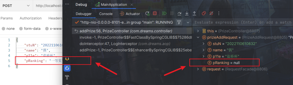 springboot开发时,突然出现一个奇怪的问题,如图,可以看到传数据到后台部分接收成功,部分接收失败