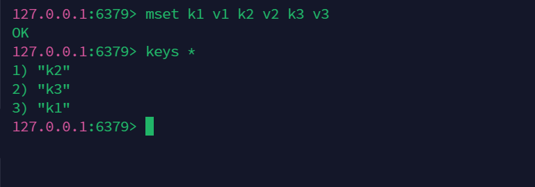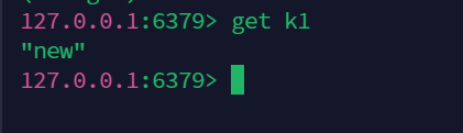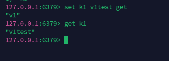 返回新的值,然后覆盖(等同于getset k1 v1test)