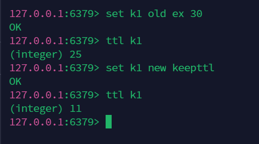 当set同一个key值,不仅会覆盖值,还会覆盖过期时间,如果要保留原来过期时间,需要加上KEEPTTL参数