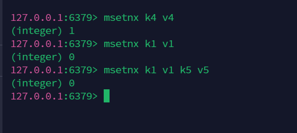 如果不存在才设置,使用MSETNX,注意如果设置多个,其中存在已有的,则全部都执行不成功。