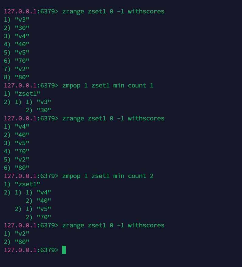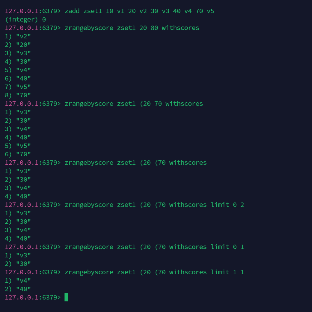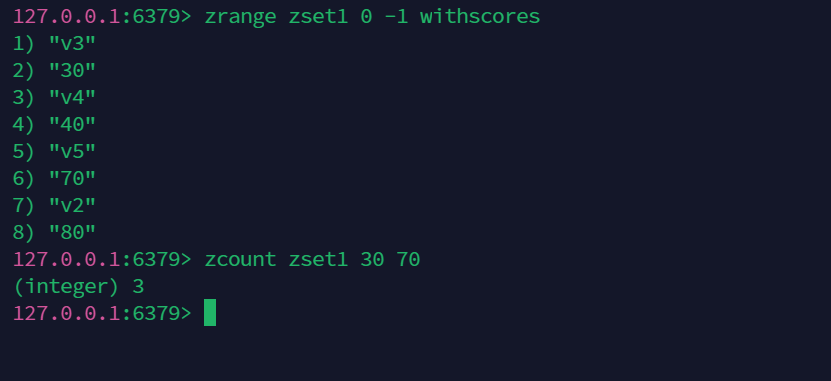 start表示开始值,-代表最小值end 表示结束值,+代表最大值,count 表示最多获取多少个值