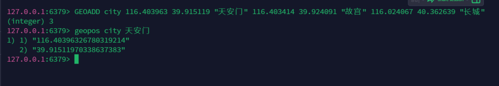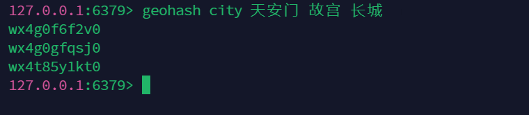 - WITHHASH: 以 52 位有符号整数的形式, 返回位置元素经过原始 geohash 编码的有序集合分值。 这个选项主要用于底层应用或者调试, 实际中的作用并不大