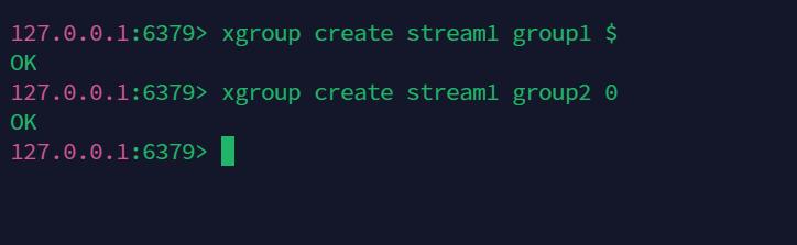 创建消费者组的时候必须指定ID, ID为0表示从头开始消费,为$表示只消费新的消息
