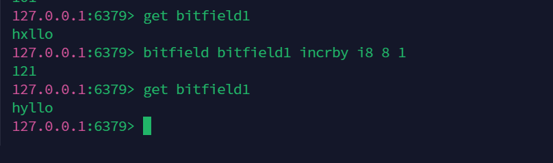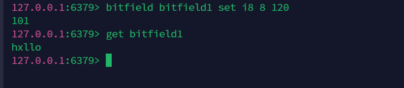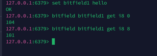 存储一个hello,通过bitfield获取,返回104,正是h的字节码,101正是e的字节码