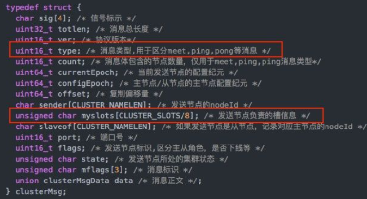 在消息头中最占空间的是myslots[CLUSTER_SLOTS/8]。