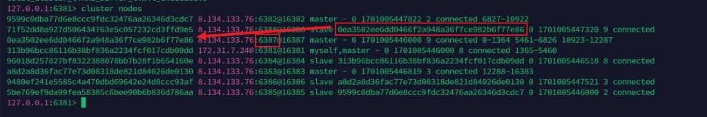 redis-cli -a 密码 --cluster add-node 8.134.133.76:6388 8.134.133.76:6387 --cluster-slave --cluster-master-id 0ea3502ee6dd0466f2a948a36f7ce982b6f77e86