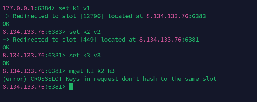 比如,他会提示我们他算出的HASH_SLOT是12706,提示我们应该在6383上执行