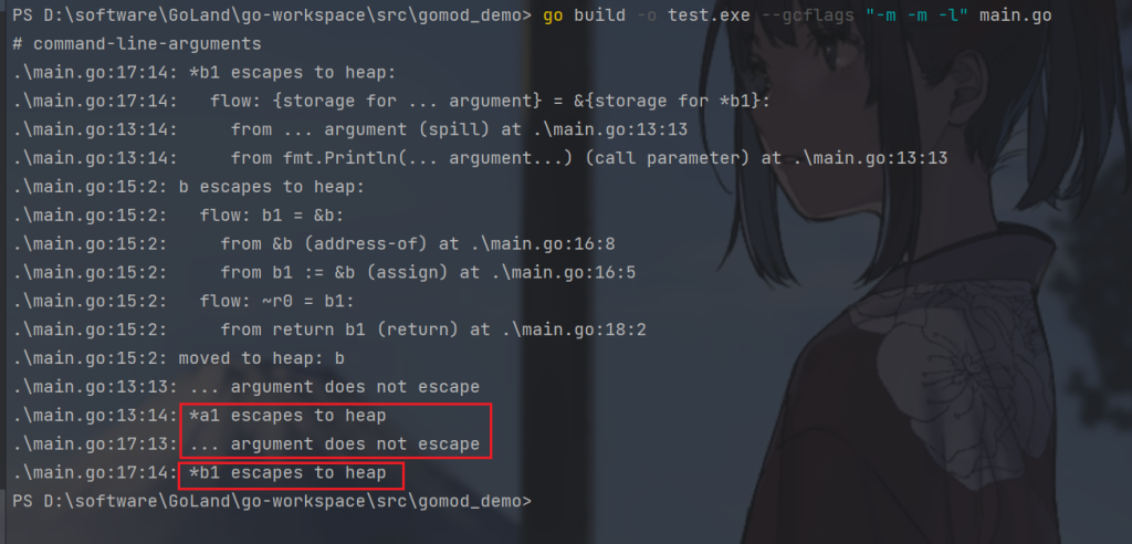 go build -o test.exe --gcflags "-m -m -l" main.go