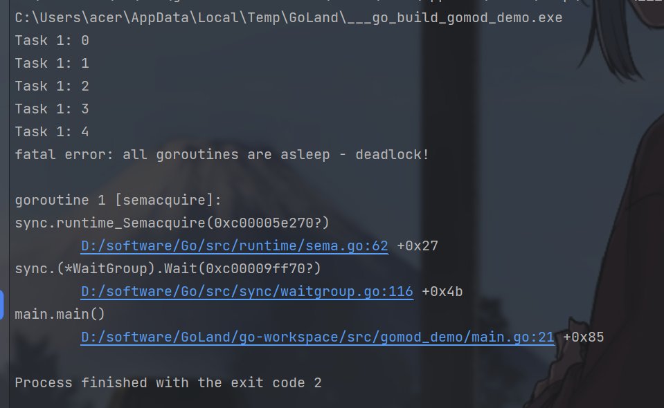 如果注掉一个协程,wg次数不为零,就会产生死锁