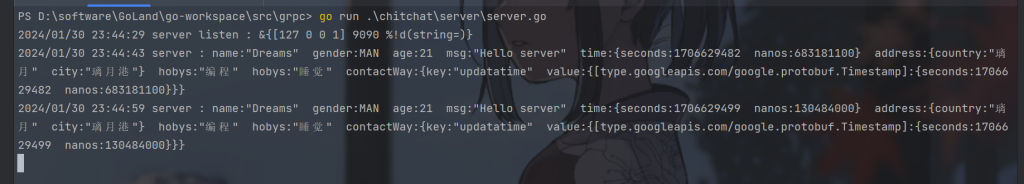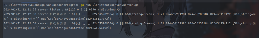 • repeated:字段可以包含零个或多个值。消息体中可重复字段,重复的值的顺序会被保留,这种限制适用于数组或集合类型的字段。(生成切片类型)