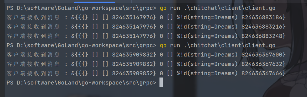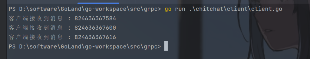 fmt.Printf("客户端接收到消息 : %d\n", recv.Msg)
