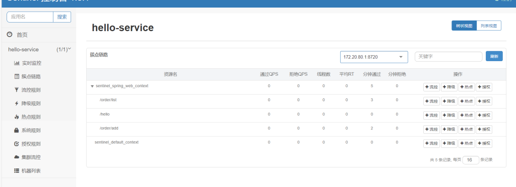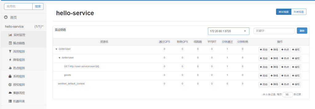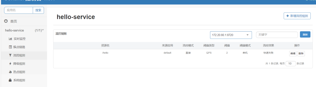dashboard: localhost:8080 # sentinel控制台地址启动hello-server