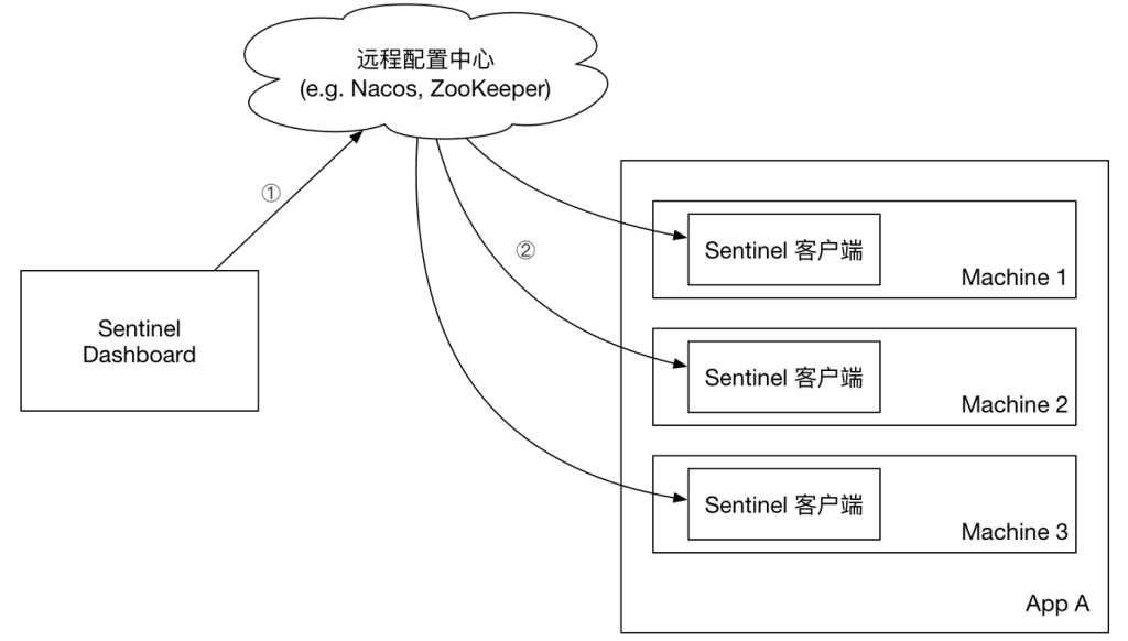 - Push 模式: 扩展读数据源(ReadableDataSource),规则中心统一推送,客户端通过注册监听器的方式时刻监听变化,比如使用 Nacos、Zookeeper 等配置中心。这种方式有更好的实时性和一致性保证。生产环境下一般采用 push 模式的数据源。