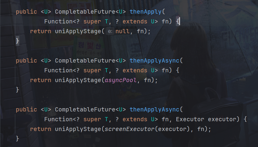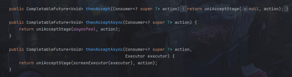 CompletableFuture<Integer> futureB = futureA.thenApplyAsync((res)->{