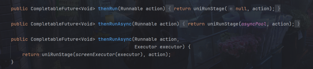 CompletableFuture<Void> future = CompletableFuture.runAsync(() -> {