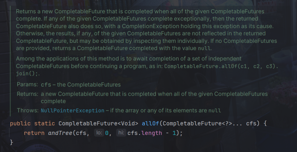CompletableFuture<Void> all = CompletableFuture.allOf(futureA,futureB);