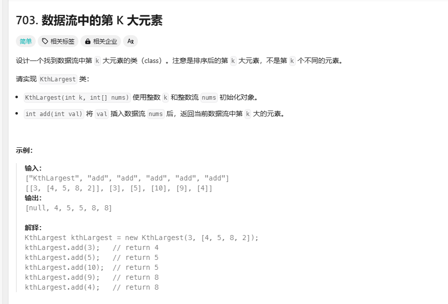 https://leetcode.cn/problems/kth-largest-element-in-a-stream/description/