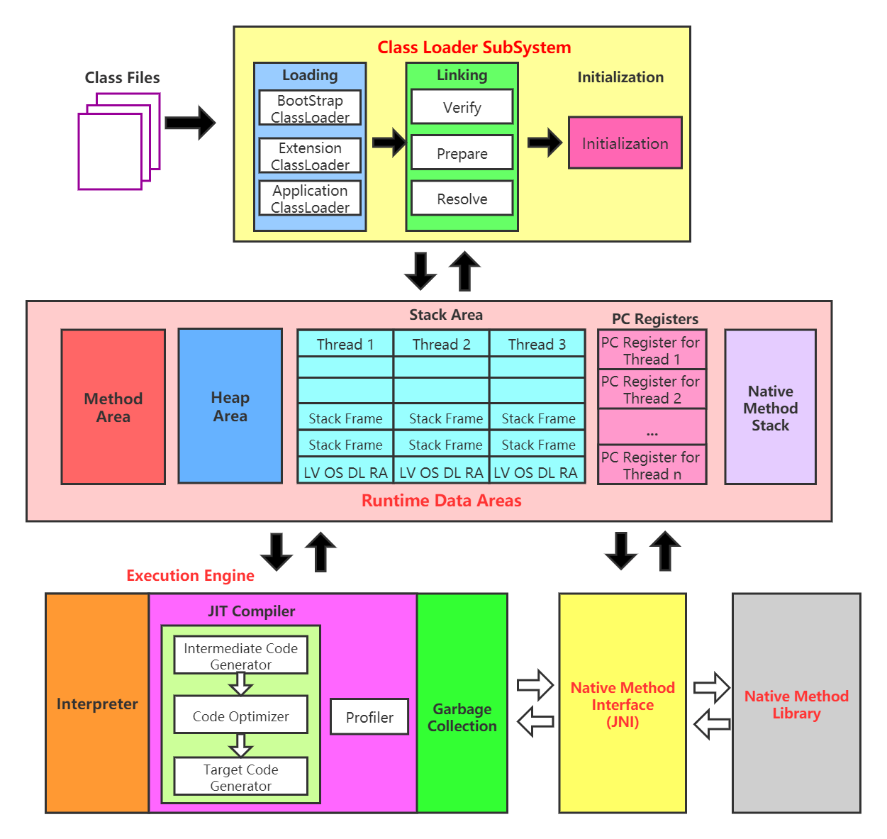 • 类加载器子系统负责从文件系统或者网络中加载class文件,class文件在文件开头有特定的文件标识。