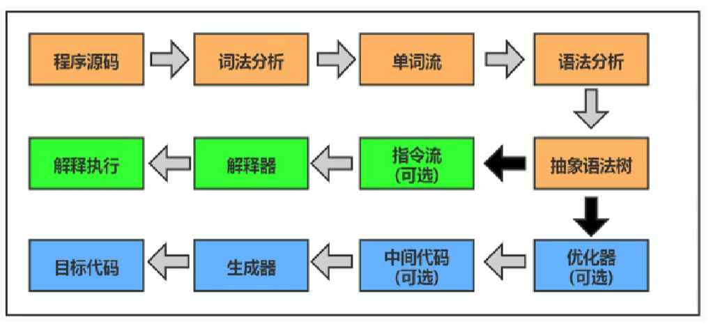 大部分的程序代码转换成物理机的目标代码或虚拟机能执行的指今集之前,都