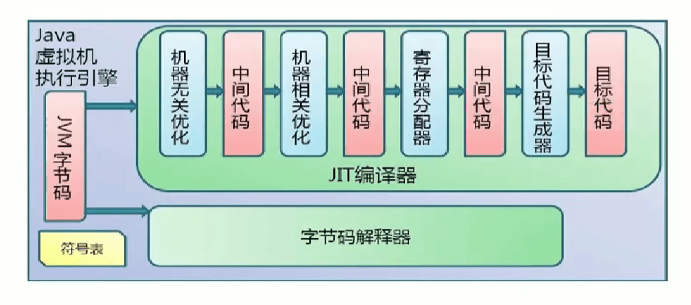 • 为了解决这个问题,JVM平台支持一种叫作即时编译的技术。即时编译的目的是避免函数被解释执行,而是将整个函数体编译成为机器码,每次函数执行时,只执行编译后的机器码即可,这种方式可以使执行效率大幅度提升。
