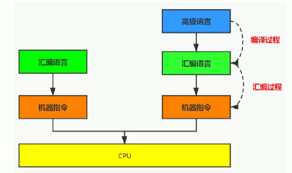 • 在不同的硬件平台,汇编语言对应着不同的机器语言指令集,通过汇编过程转换成机器指令。
