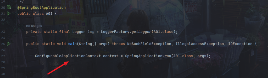 ConfigurableApplicationContext context = SpringApplication.run(A01.class, args);