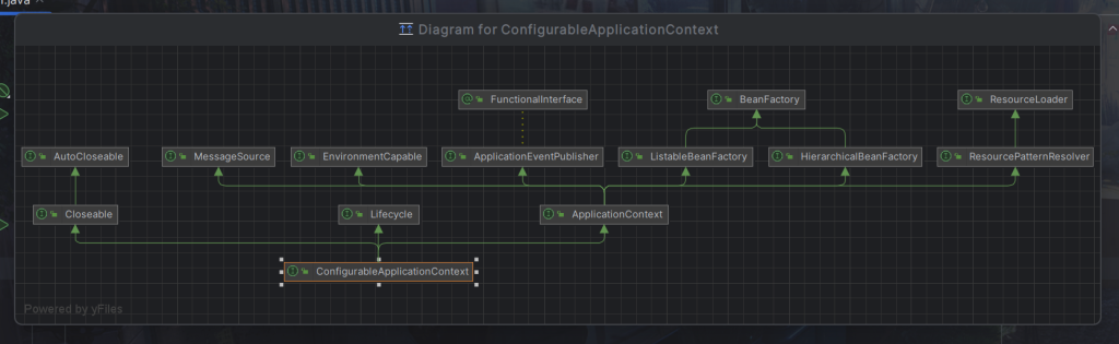 ConfigurableApplicationContext 是 Spring 框架中的一个接口,扩展了 ApplicationContext 接口。 ctrl+Alt+U打开类图