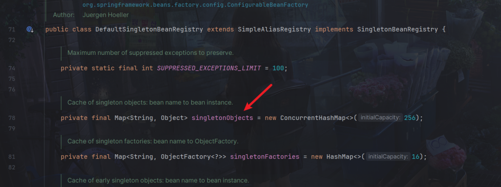 这个缓存是一个 ConcurrentHashMap,它使用 bean 的名称作为键,bean 实例作为值。