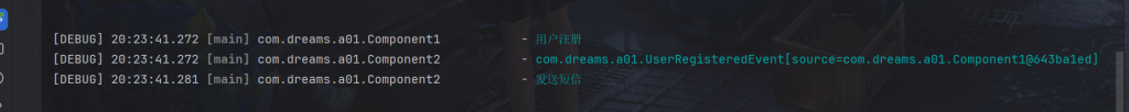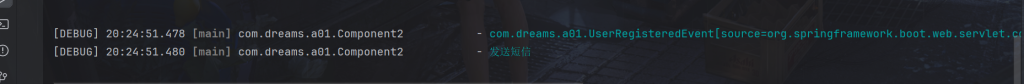 发布 UserRegisteredEvent 事件,由 Event02类自动进行处理 由 Event02类接收