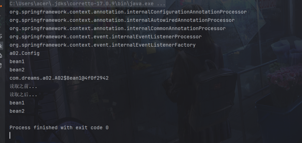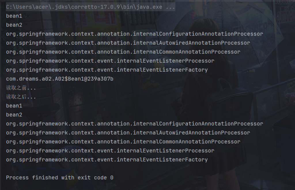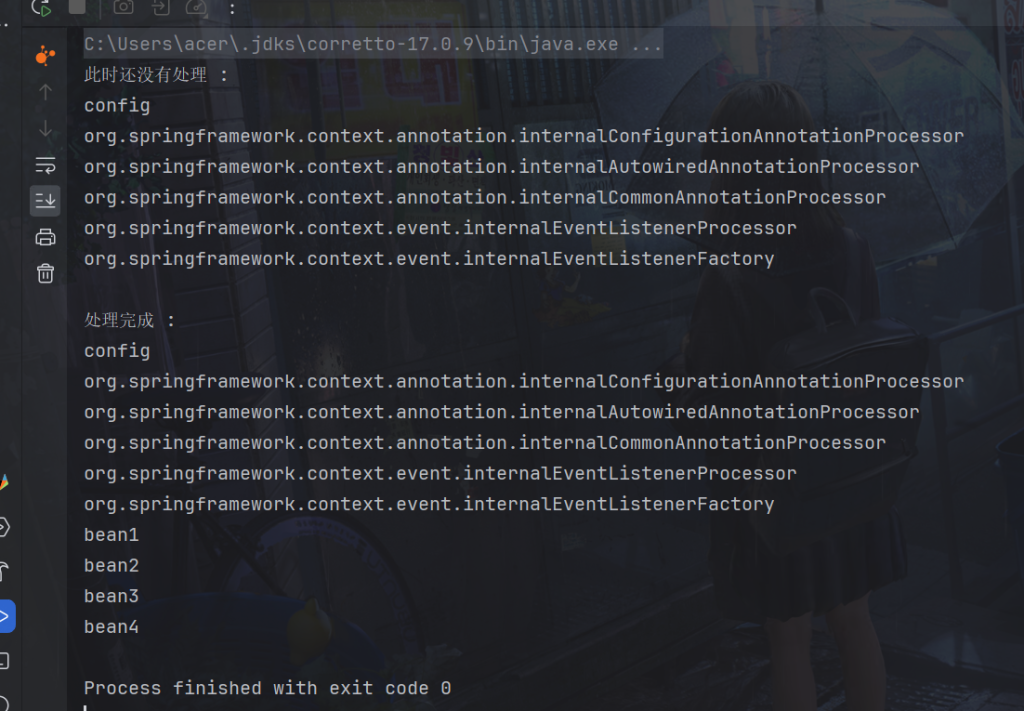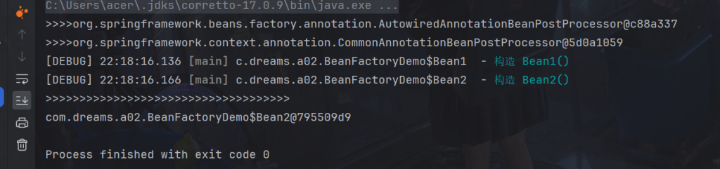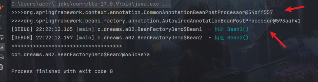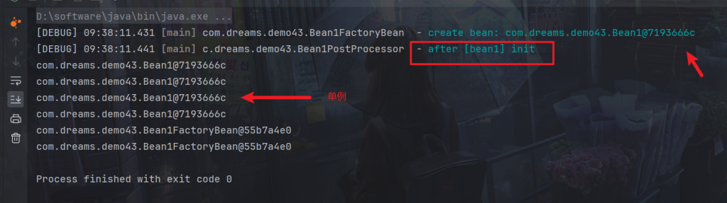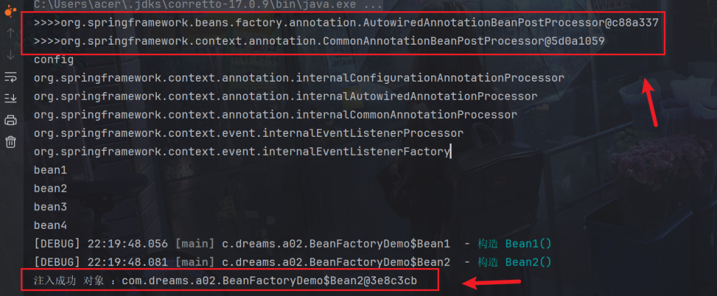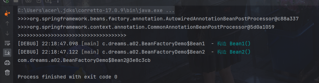 可以看到按名字去获取时, 拿到的是产品对象, 名字前面加 & 获取的是工厂对象,而且Bean1类是由工厂创建的,Bean1的@Autowired、@PostConstruct、Aware回调都失效了。而Bean后处理器只会走初始化后处理postProcessAfterInitialization,初始化后处理的例子就是代理增强了,也就是代理可以生效。