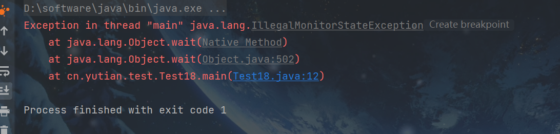 注意:必须获得此对象的锁,才能调用这几个方法,否则报以下错误:
