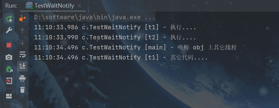 //obj.notifyAll(); // 唤醒obj上所有等待线程