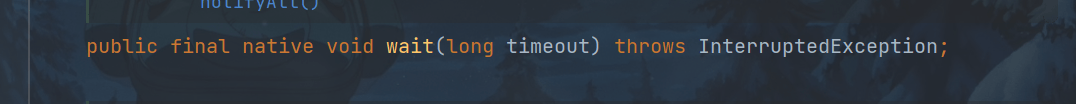 该方法相比 wait) 方法多了一个超时参数,它的不同之处在于,如果一个线程调用共享对象的该方法挂起后,没有在指定的 timeout ms 时间内被其他线程调用该共享变量的notify()或者 notifyAll()方法唤醒,那么该函数还是会因为超时而返回。如果将timeout设置为 0则和wait方法效果一样,因为在wait方法内部就是调用了wait(0)。需要注意的是,如果在调用该函数时,传递了一个负的timeout 则会抛出IllegalArgumentException异常。